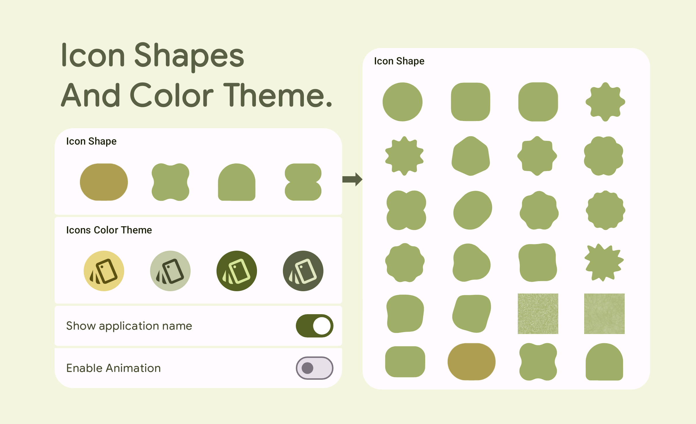 Variety of Shapes: A wide variety of icon shapes are offered and can be further expanded. This allows you to give all icons inside the folder a unified or unique appearance.