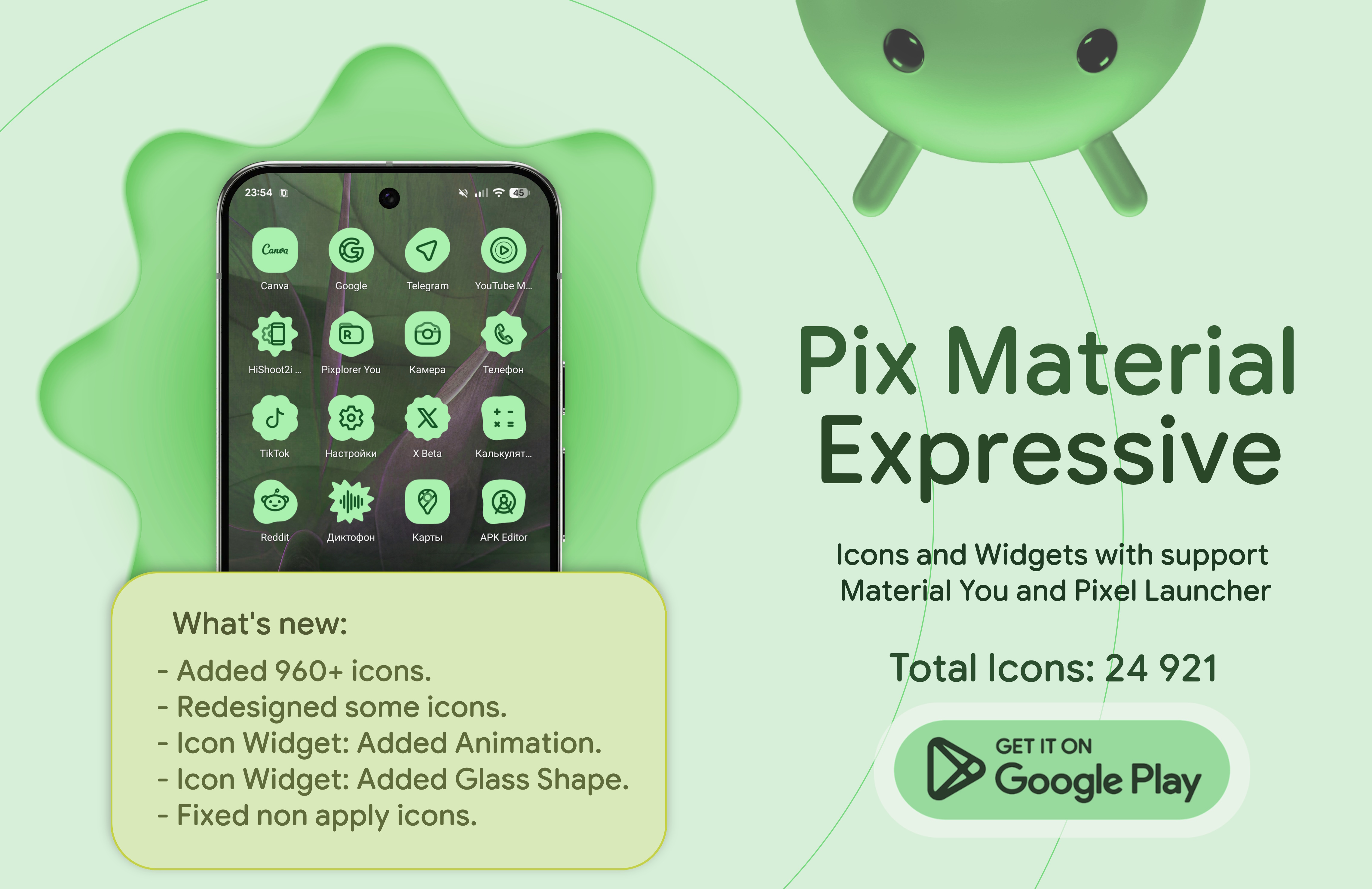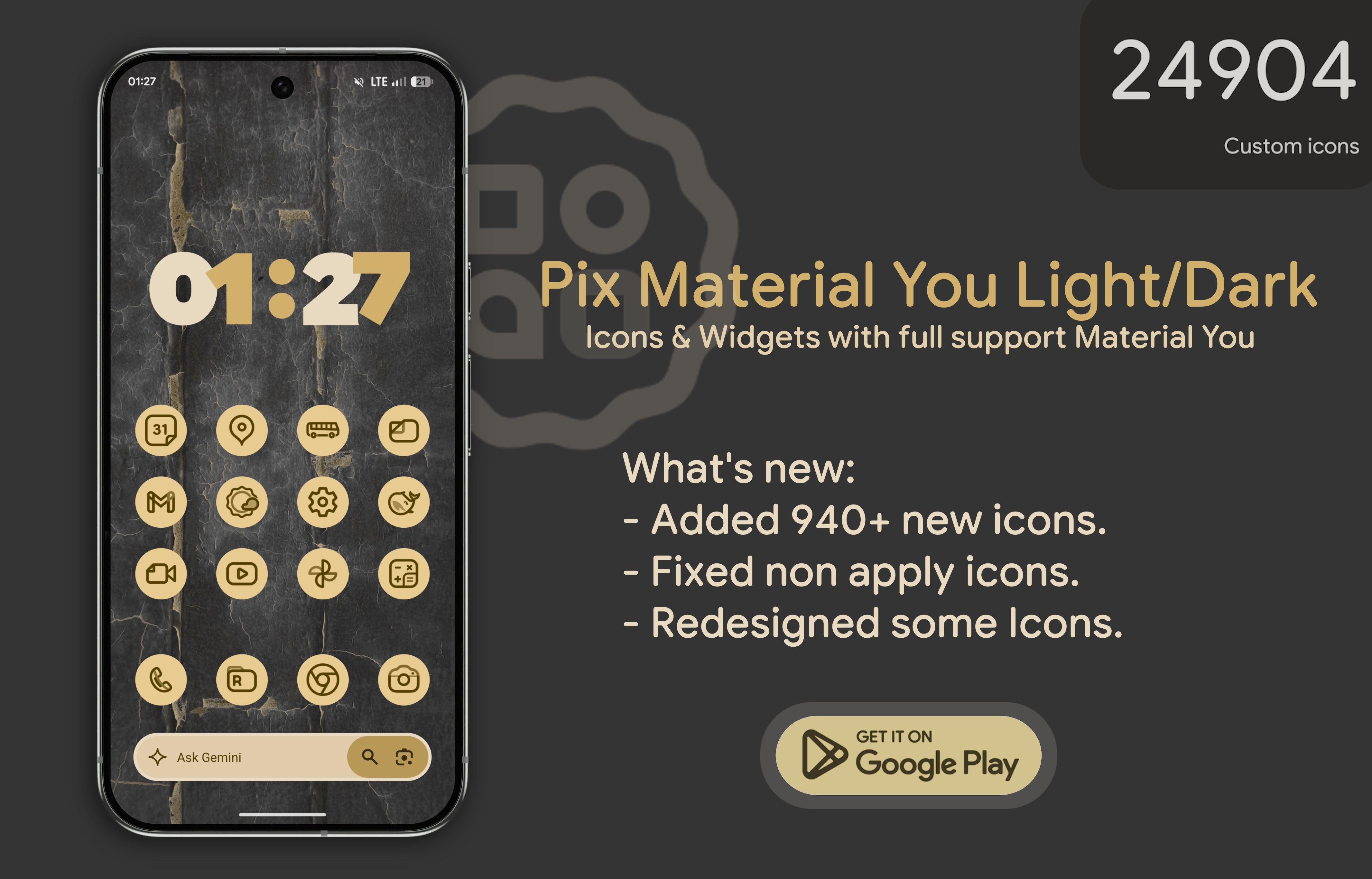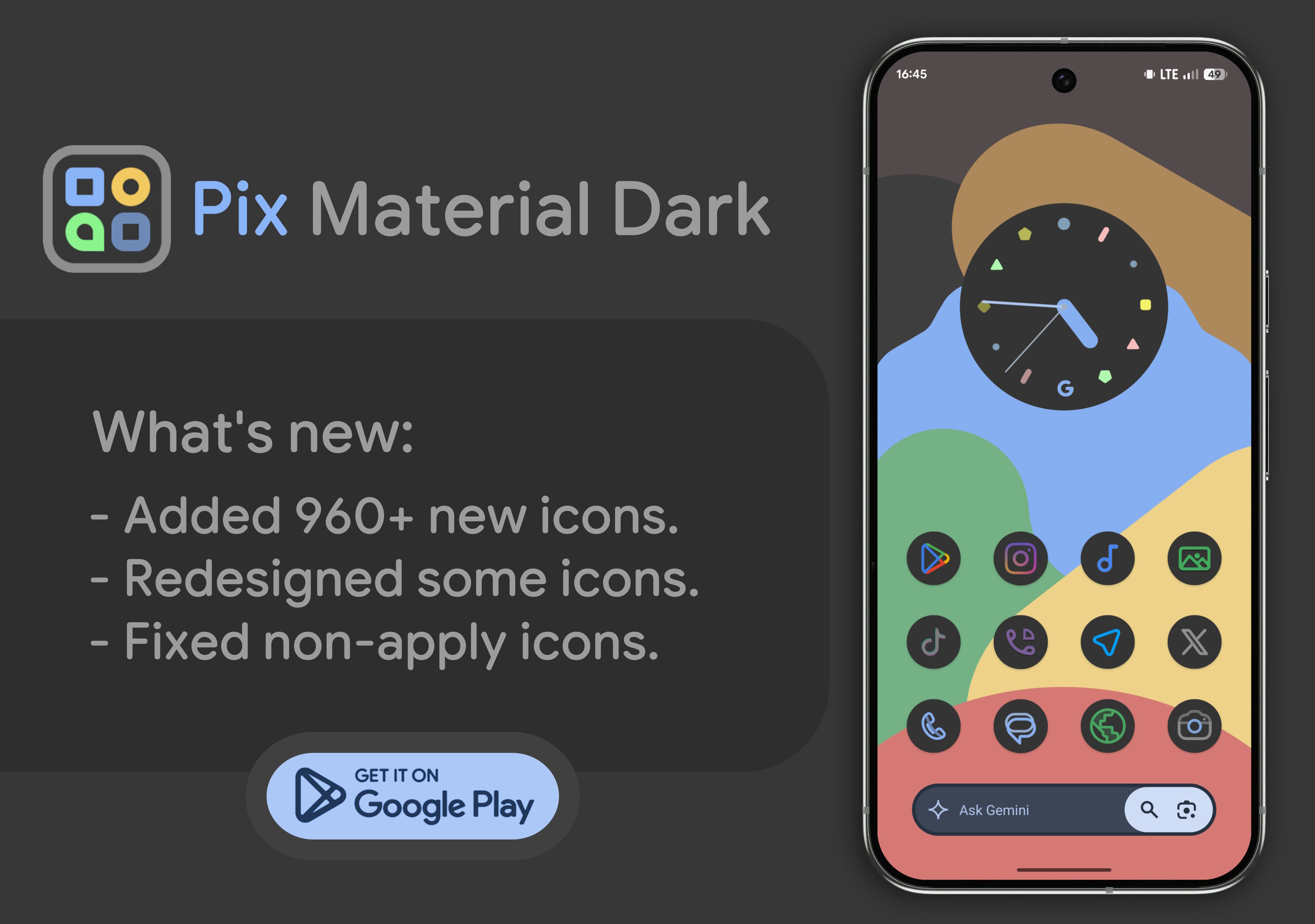 The very first icon pack from Pix Material line has been updated. Pix Material Icon Pack - Linear adaptive icons on multicolored backgrounds.